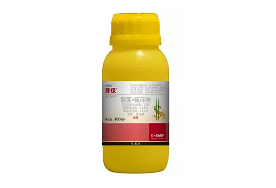 1、尊保®为氟环唑和醚菌酯的混配杀菌剂,该产品兼具三唑类及甲氧基丙烯酸酯类杀菌剂的优良特性,具有独特的作用机制,早期使用可阻止病菌侵入,并延缓抗性的产生。